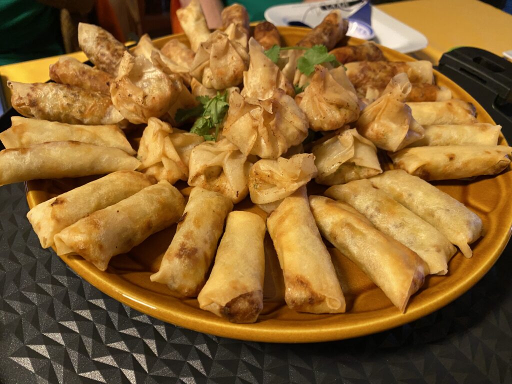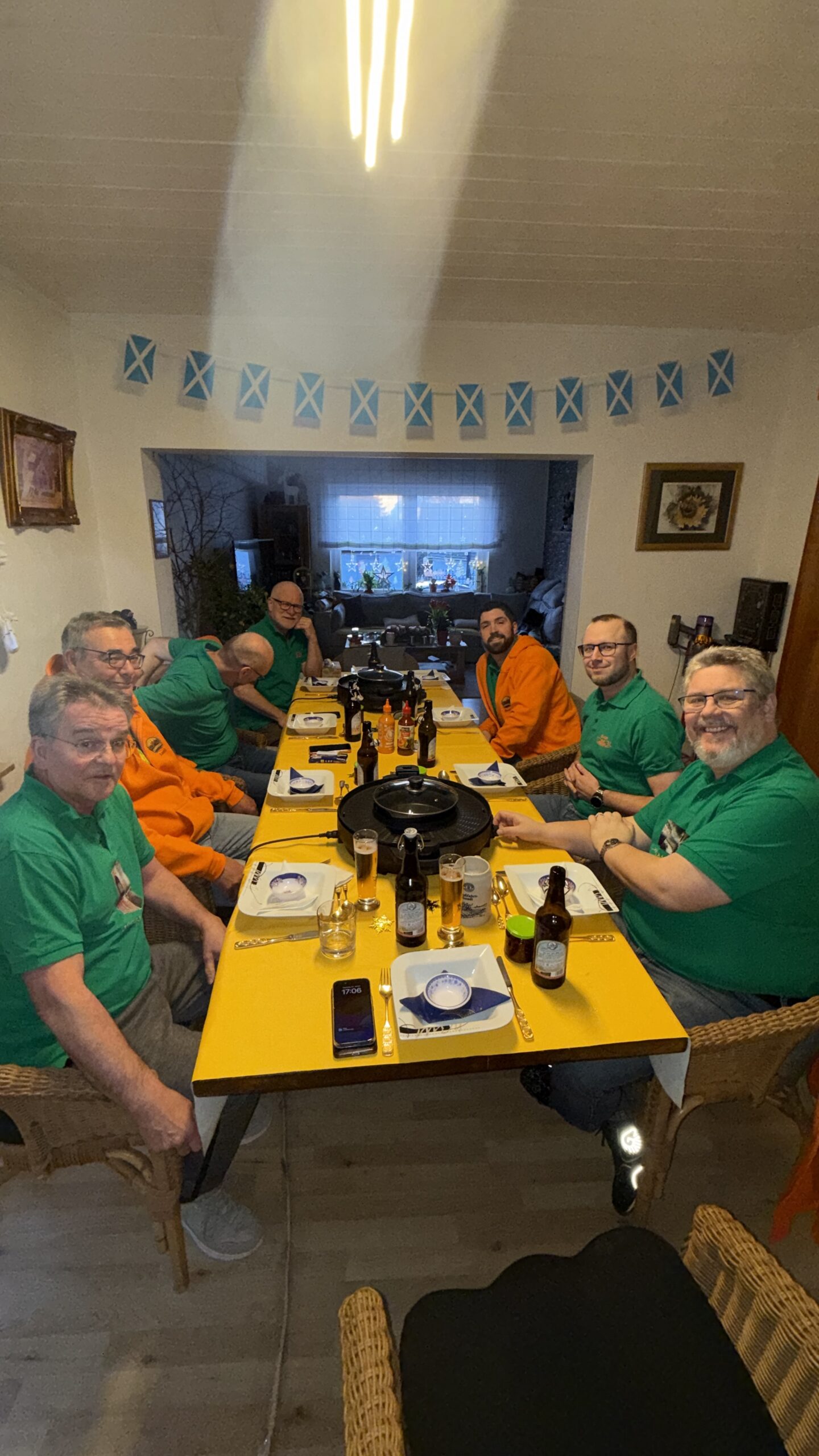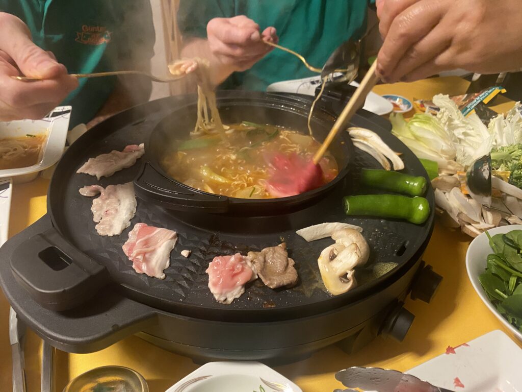 Wie jedes Jahr durften wir wieder bei unseren bewährten Gastgebern einkehren. Und wie jedes Jahr war sofort klar: Hier geht niemand hungrig oder durstig nach Hause. Dieses Mal stand ein herrlich brodelnder Hot Pot im Mittelpunkt, mit ordentlich scharfer Brühe, reichlich Auswahl zum Einlegen und Grillen auf der heißen Platte. Dazu selbstgemachte Frühlingsrollen als Auftakt und zum krönenden Abschluss eine mit Whisky verfeinerte Mousse au Chocolat – kurz gesagt: kulinarisch ganz großes Kino. Vielen Dank an Aun & Axel für diese Verwöhnrunde!