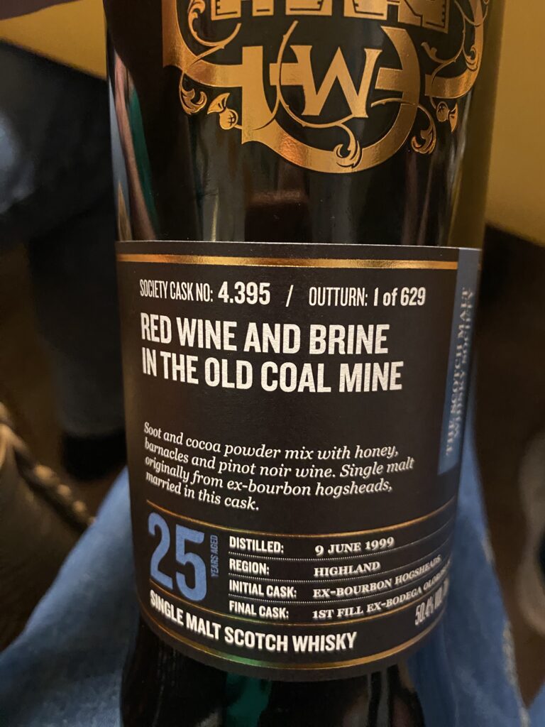 - Highland Park 25 Jahre (1999), SMWS „Red Wine and brine in the old coal mine“