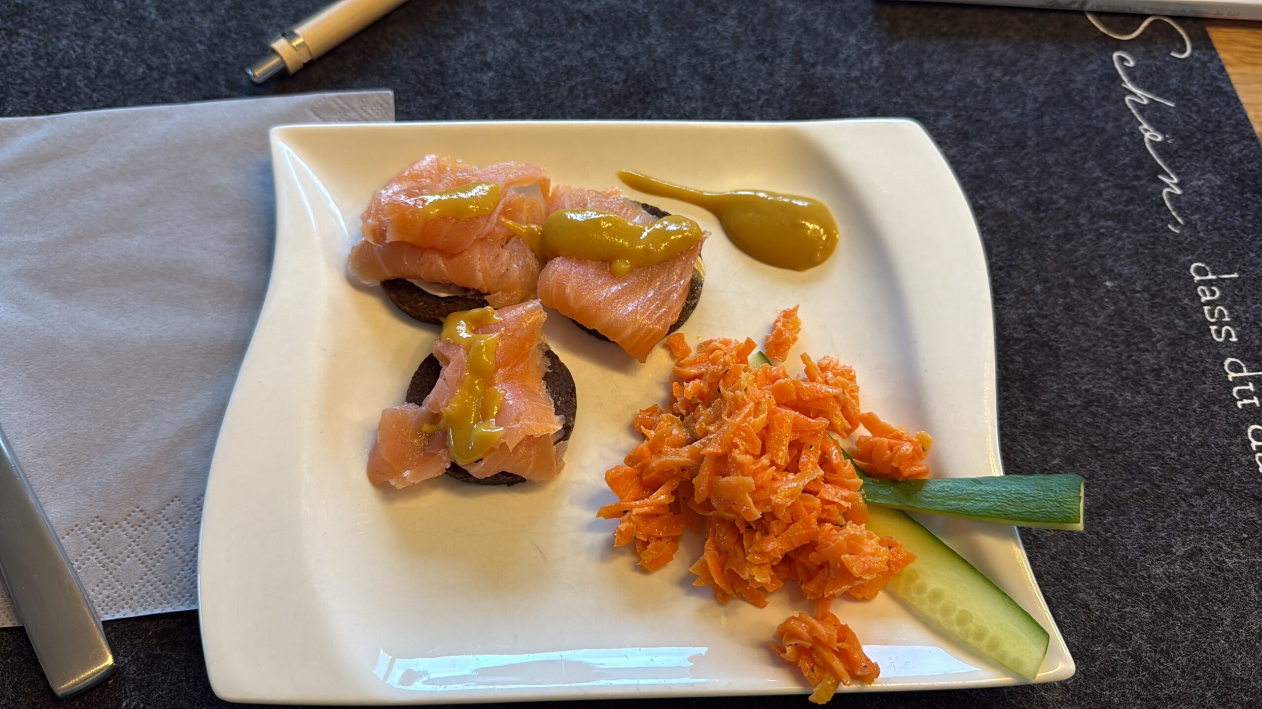 Wie beim vorherigen Whisky-Tasting von Basti vorgeschlagen, hat er sich der Herausforderung gestellt ein Menü zu kreieren, bei dem zu jedem Gang der passende Whisky kredenzt werden sollte. Ich denke, da stimmt Ihr mir alle zu, diese Herausforderung hat er super gemeistert!